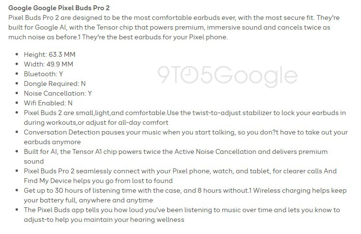 That retail source also touts the “twist to adjust” stabilizer wing and a new Pixel Buds app feature that tracks how loud your music is being played.
