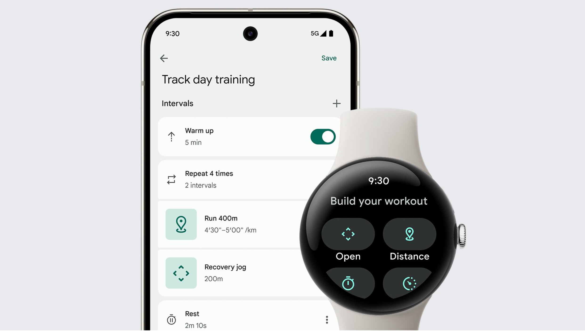 A big focus of the Pixel Watch 3 is what Google considers “advanced running capabilities.” The Workout Builder starts by letting you create running routines that let you set the target pace, heart rate, times, distances, and repeats, as well as timed warmups and cool downs. Of note, you can view heart rate on supported gym equipment.