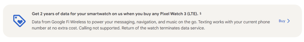 Google provides this service to both 41mm and 45mm Pixel Watch 3 models through Google Fi Wireless. This won’t support voice calls, but can sync Google Messages from your other device even if you’re not a Google Fi subscriber. This doesn’t seem to directly be a pre-order offer, notably, as Google says it is valid “while posted” on the Store. On previous models, Google has temporarily offered this same deal, but this is the first time it’s been available at launch.