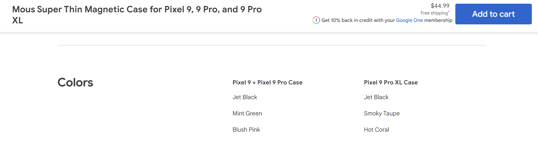 Pixel 9 and Pixel 9 Pro can use the same cases. Google’s lineup of official cases, which we’ve already gone hands-on with, don’t include separate cases for the 9 and 9 Pro. Rather, they’re actually marked on the packaging to be cross-compatible with the two devices. The same applies to third-party brands, as clearly evident in the Google Store in cases from several Made for Google partners.