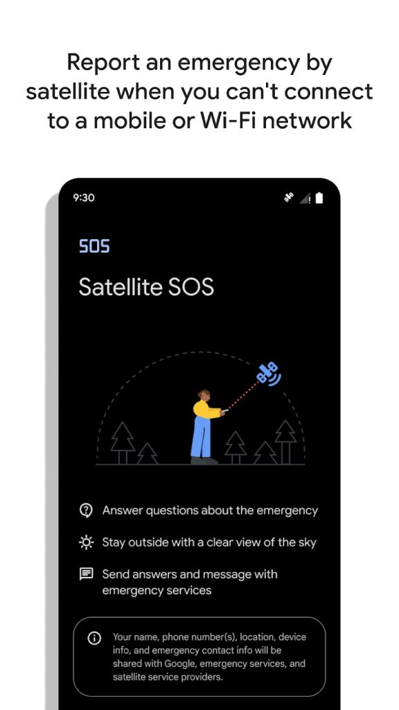 Satellite SOS is a new feature available to the PIxel 9, 9 Pro, 9 Pro XL, and 9 Pro Fold. It’s thanks to the new Exynos 5400 modem on the Tensor G4 chip which improves support for satellite connectivity (something that the previous Samsung modem technically did support).