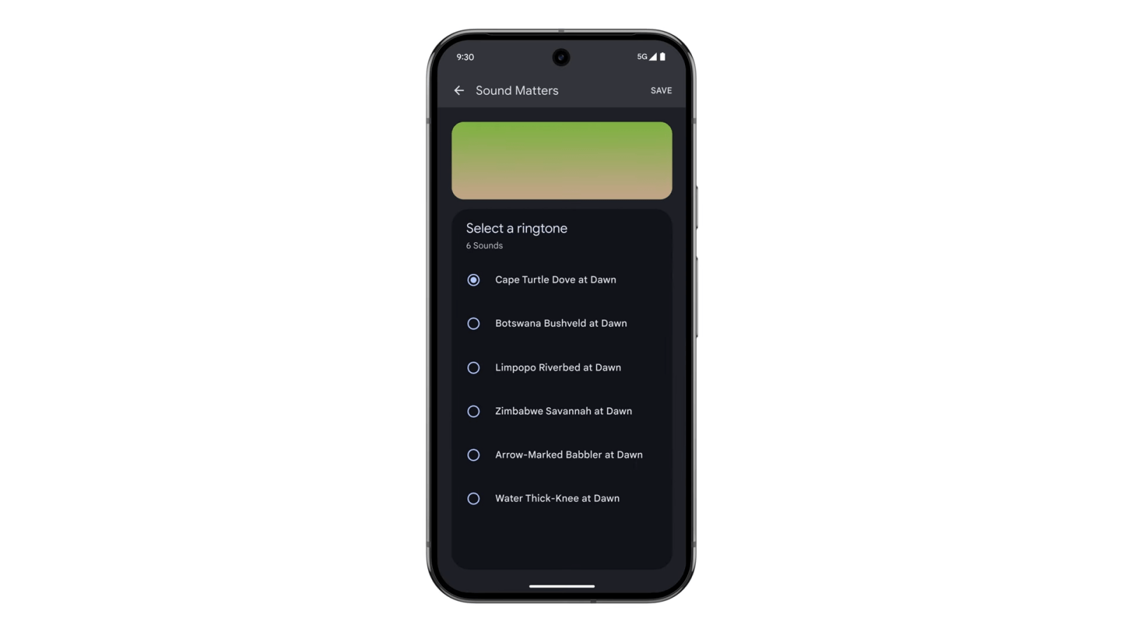 On your Pixel device, go to Settings > Sound & vibration to find six ringtones and alarm sounds in the new Sound Matters collection
