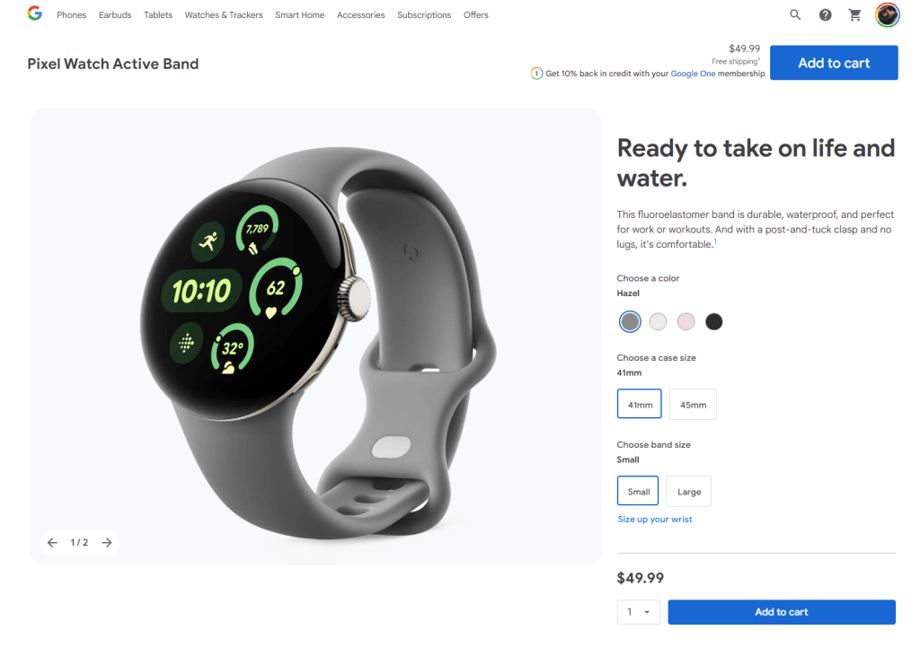 But Google has also purged its store of color options for the Pixel Watch Active Band.
