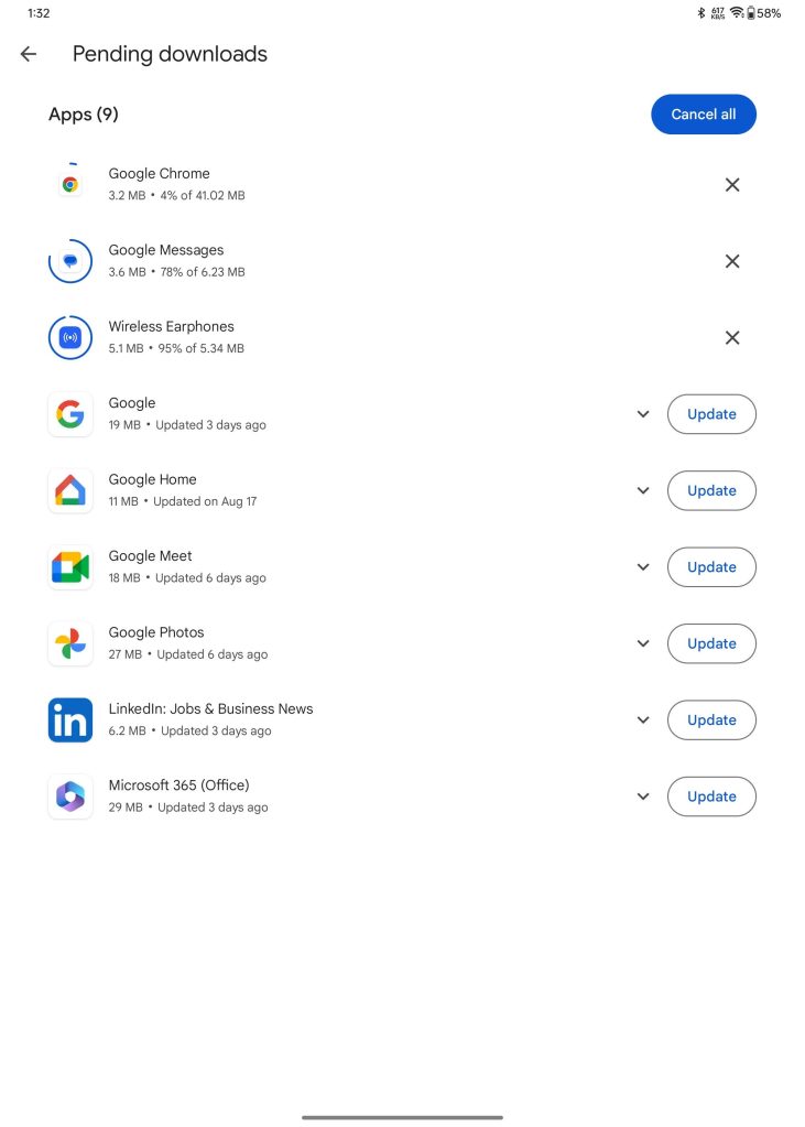 As far as we can tell, you can download up to three app updates at once through the Play Store. The apps will start to download, with only anything beyond three showing the “Pending” status that we’re all so used to seeing in the Play Store. This matches the App Store on iOS which can also download up to three apps at once.