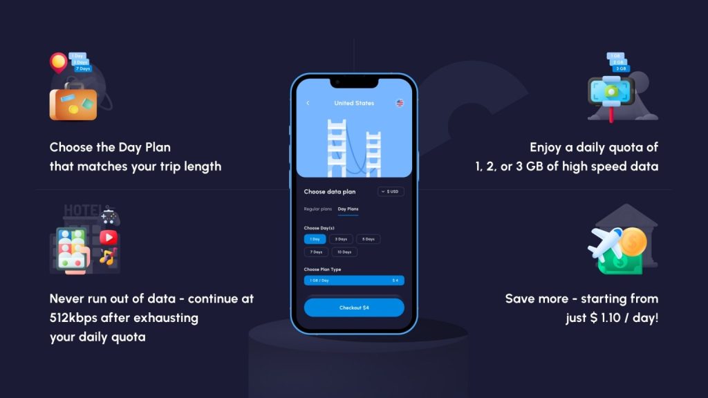 Quick trip? Nomad also offer day plans which allow you to flexibly select how long you’ll need data for and how much data you’ll need, with unlimited data at slower speeds (512kbps) once you’ve used up the high-speed data you’ve already purchased. That’s perfect if you don’t know how long your trip will be, as well as to prevent wasting money on 15-day or 30-day plans when you really just need a couple of days worth of data.
