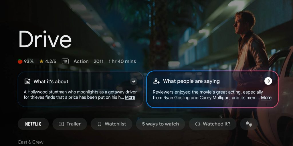The “What people are saying” option pulls reviews from Google, critics, and even gives you overview of any awards or accolades. I’m not sure how AI is powering these sections, but the extra information is helpful when you’re trying to find the next thing you’re going to binge on.