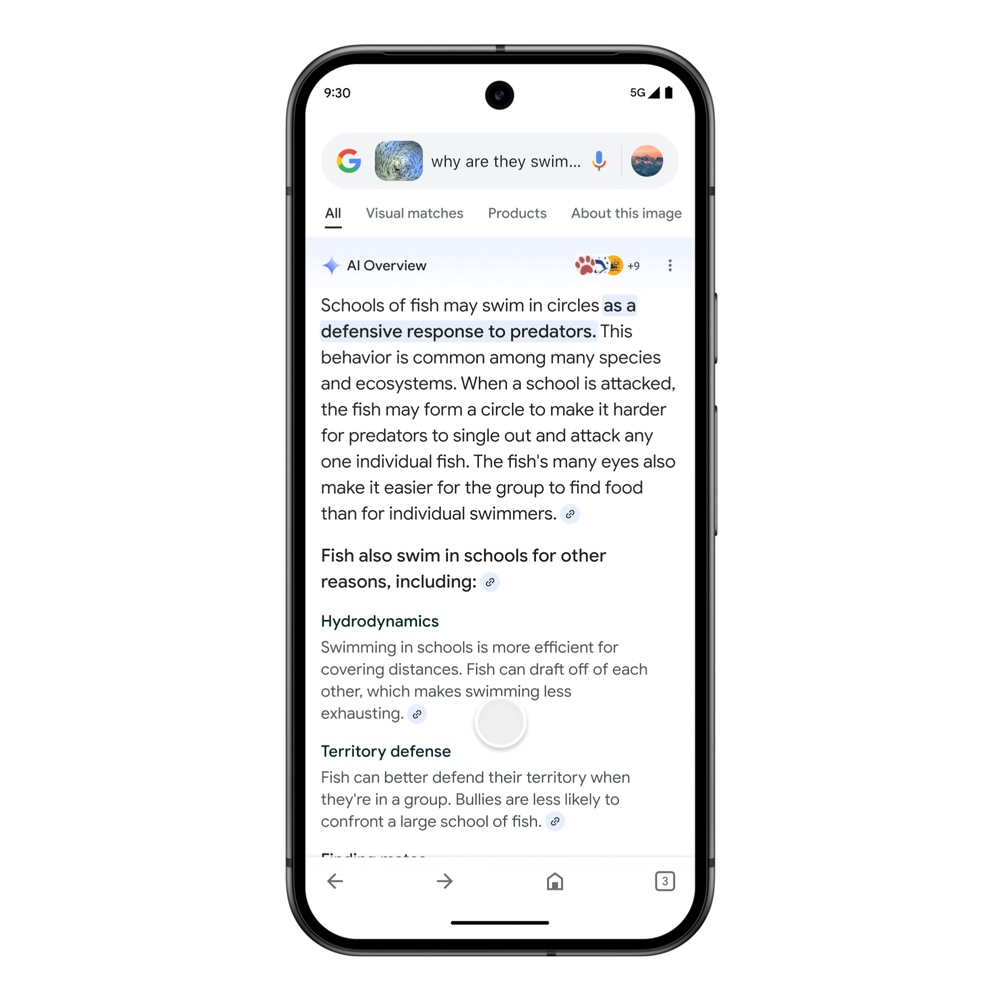 Our systems will make sense of the video and your question together to produce an AI Overview, along with helpful resources from across the web.