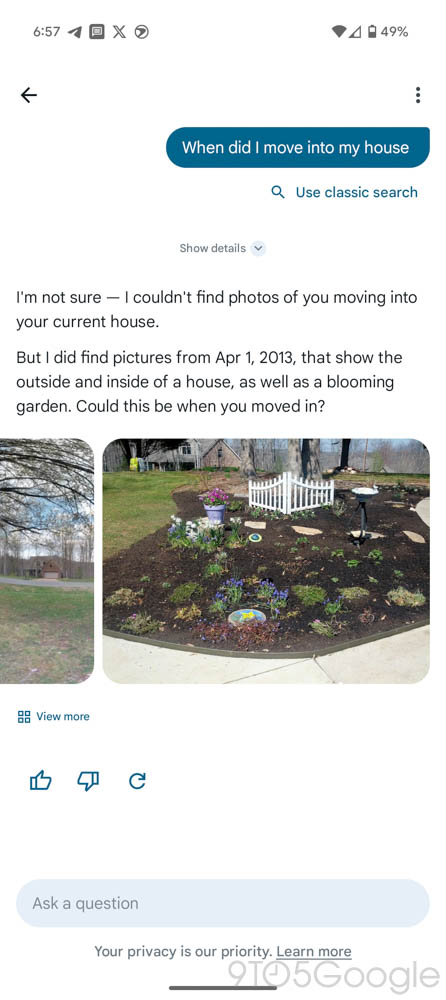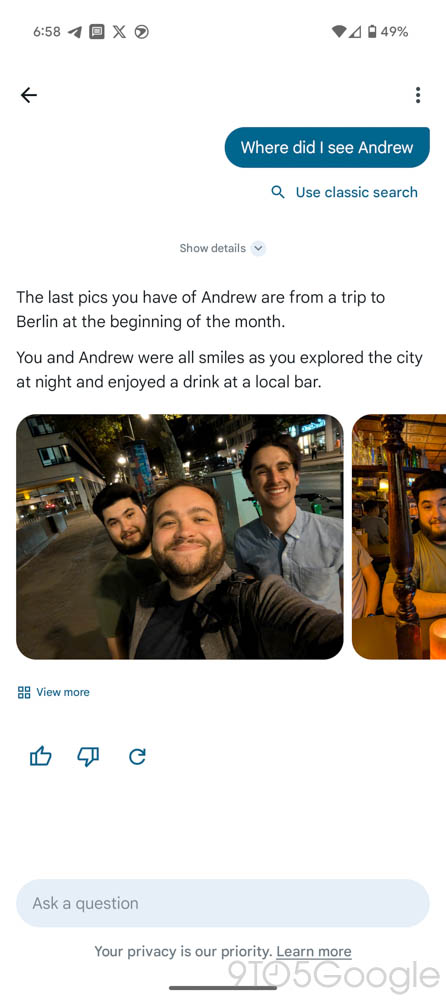 As for the functionality itself, we’ve noticed that Ask Photos, in our limited testing so far, is best at answering questions that are about people and places, not about events or things.