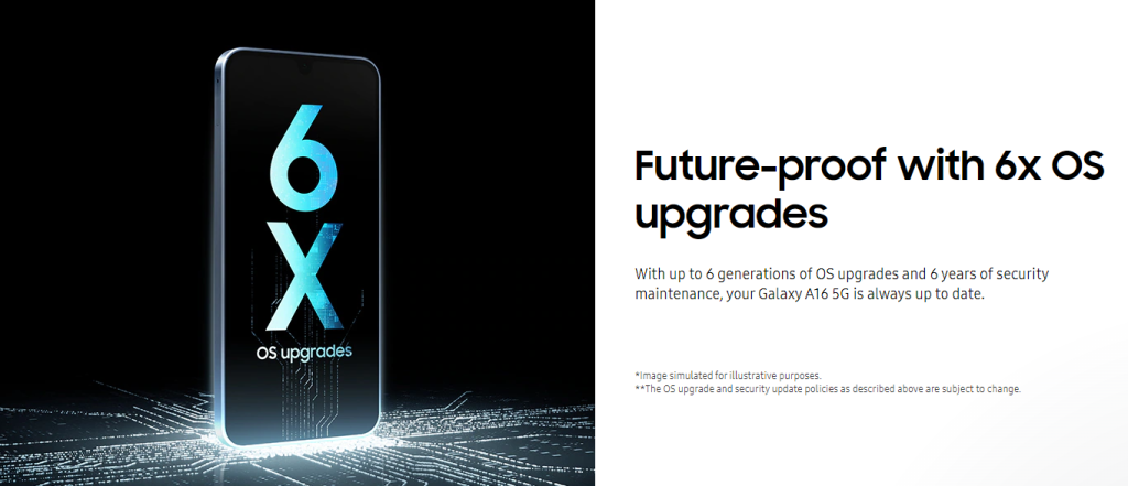 The new Galaxy A16, which Samsung has posted on its website in some countries such as the Netherlands and France, now gets 6 years of software support, including full Android OS upgrades. Samsung confirms that the device will get a total of 6 Android OS upgrades, with support available through “at least October 2030.” Out of the box, the Galaxy A16 runs Android 14.