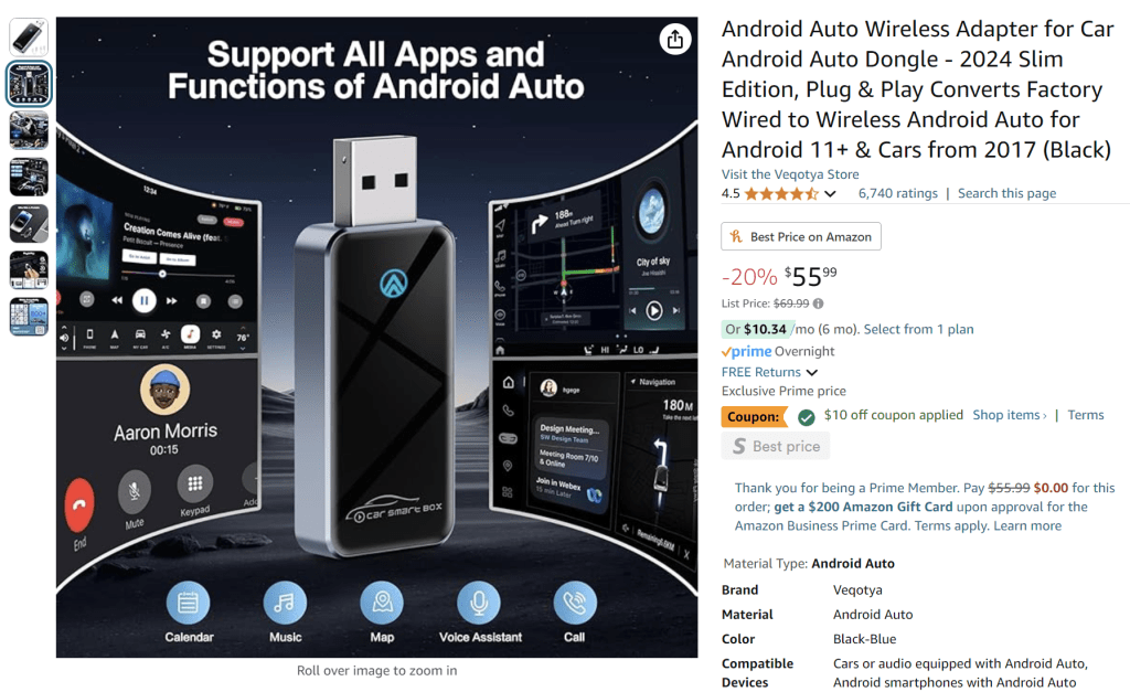 In the time since, the market has continued to open up, with countless options available when you search “wireless Android Auto adapters” on Amazon. You can find countless options for around $50-$60, often with big discount coupons available. And, in many cases, you seem to be getting a functional piece of hardware.