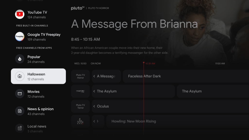 Available now through the “Live” tab on Google TV, a new “Halloween” section shows a selection of a dozen channels that fit in with the October 31 holiday. None of these channels are particularly new, but this section makes the channels fairly easy to find.