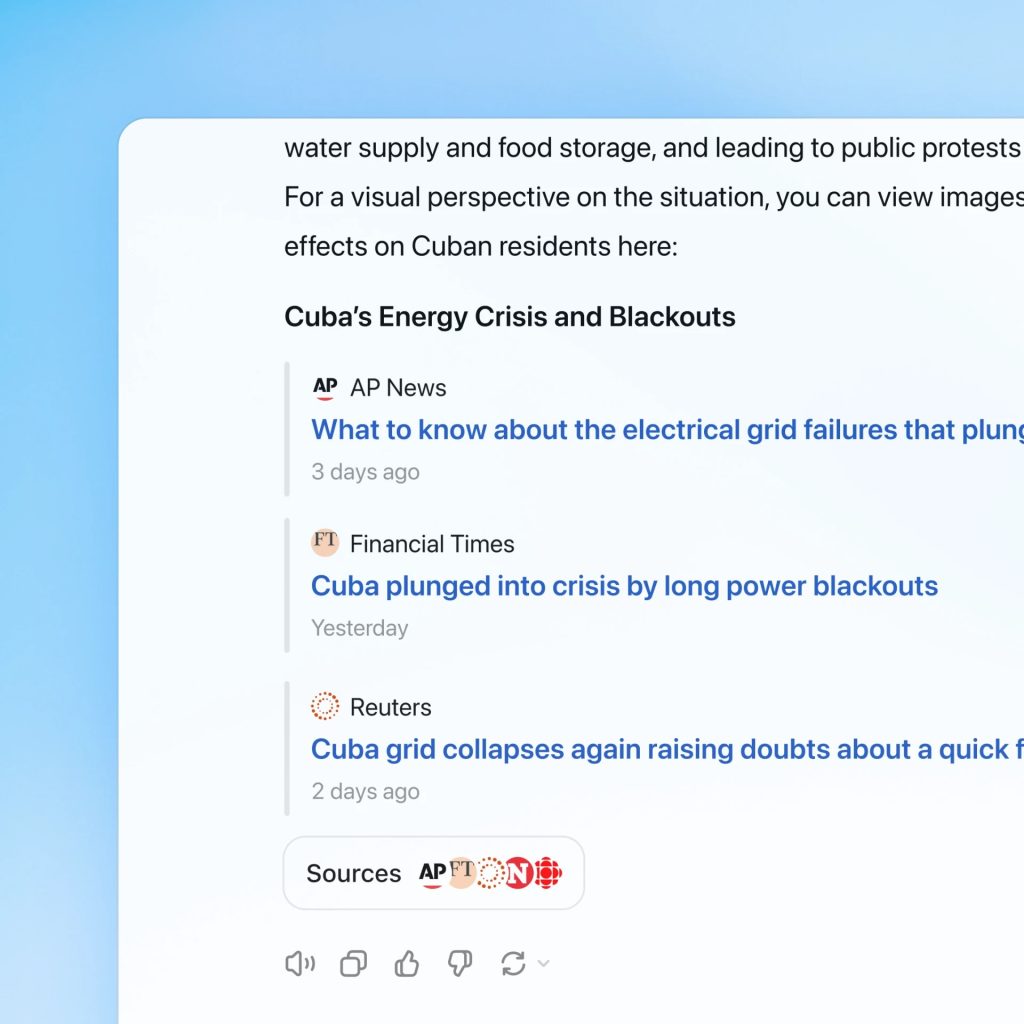 Alongside general answers and web links, ChatGPT will also be able to surface weather (powered by AccuWeather), stocks, sports scores, news, and maps. News content, ChatGPT says, comes following the company has “collaborated extensively with the news industry and carefully listened to feedback.”