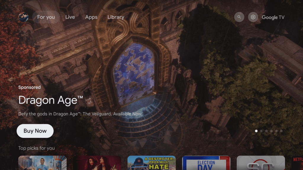 This week, users in the US may see an ad on Google TV devices which promotes “Dragon Age: The Veilguard,” a new game for PS5, Xbox, and PC. The game isn’t available on Google TV itself, but the ad shows a prominent “Buy Now” button. Clicking that button, however, doesn’t let you purchase the game in any capacity. Rather, it leads to the YouTube channel for the game.