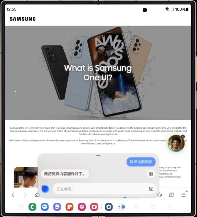 Samsung details four key new abilities of this updated Bixby, starting with the ability to pull video into requests. Samsung gives the example of adding videos to text responses when asking for travel tips. There’s also a new feature that allows Bixby to translate web pages.