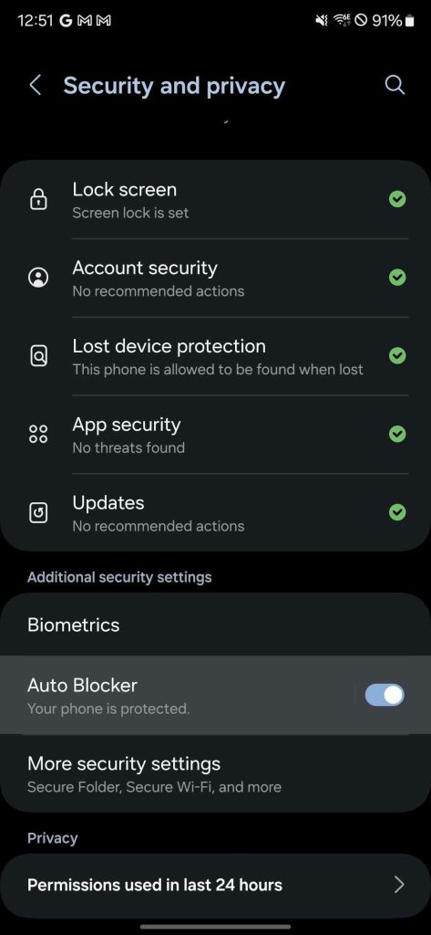 To change this, go to Settings > Security and privacy > Auto Blocker > Maximum restrictions and ensure these are turned off. You can still have Auto Blocker enabled to and continue using Android Auto on a Samsung Galaxy device, but “Maximum restrictions” must be disabled. You’ll be asked to enter your PIN if you turn off Auto Blocker entirely.