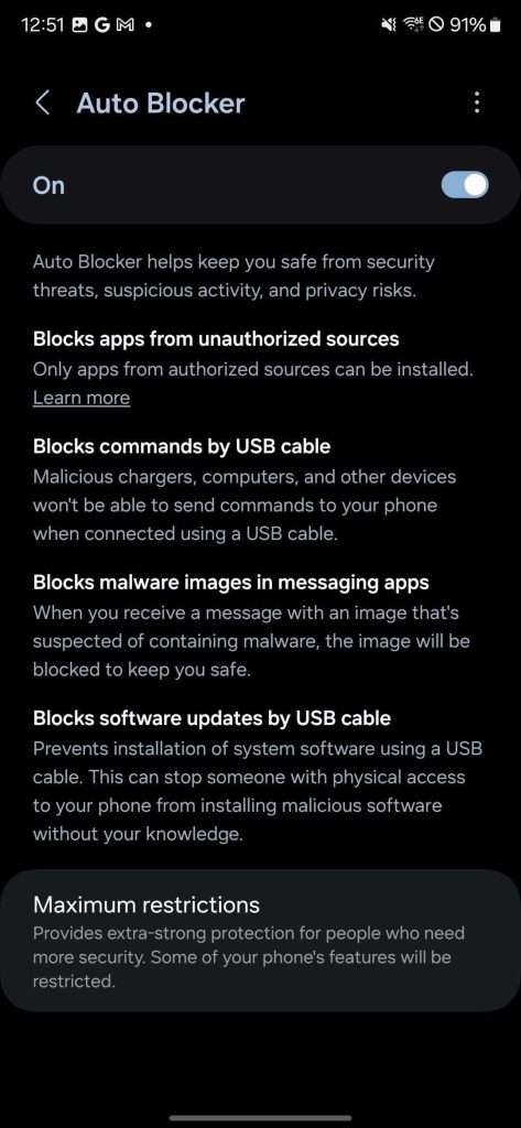 The good news here is that Auto Blocker isn’t enabled by default, and you have to turn on “Maximum restrictions” manually as well. This update should only have an impact on Android Auto if you already had Auto Blocker enabled and if you had it set to its highest settings too, like one user on Reddit ran into already.