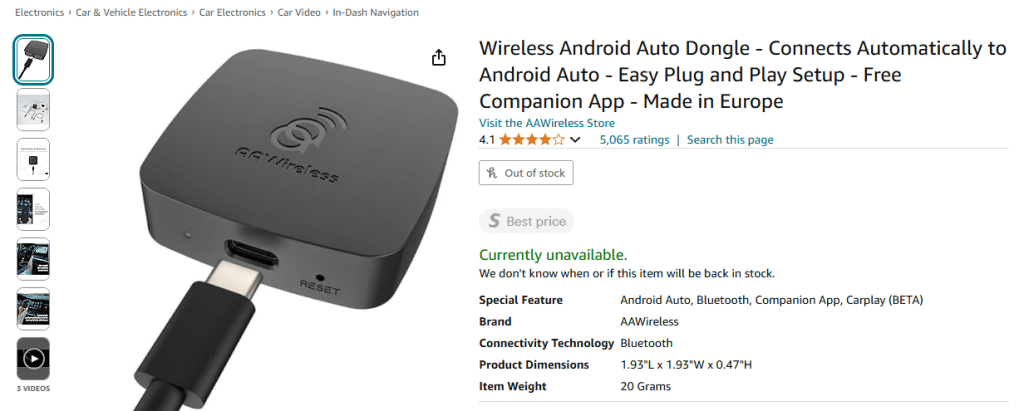 The first AAWireless device launched in 2020 with the idea of turning a wired Android Auto connection into a wireless one. It was a bold idea at the time but, impressively, it worked from the very start. After a successful crowdfunding campaign the device started shipping to customers and eventually hit the broader market. The price came down over time too.