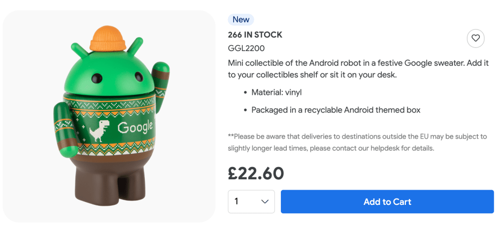 However, you can get the glow-in-the-dark figurine and the recently released “Android Holiday Figurine,” which comes complete with a Christmas jumper and a fisherman’s beanie. The updated “Bot” figurine is also available again after a substantial restock. Initially, it was limited to just 200 units but has since been restocked.