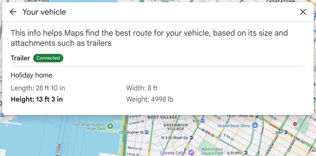 When driving with a trailer or other attachments, cars with Google Maps built-in (Android Automotive), like the 2024 Chevy Tahoe, Chevy Suburban, and GMC Yukon, will let you enter cargo dimensions to get routes that avoid low bridges and tunnels. More vehicles will be supported in the future.