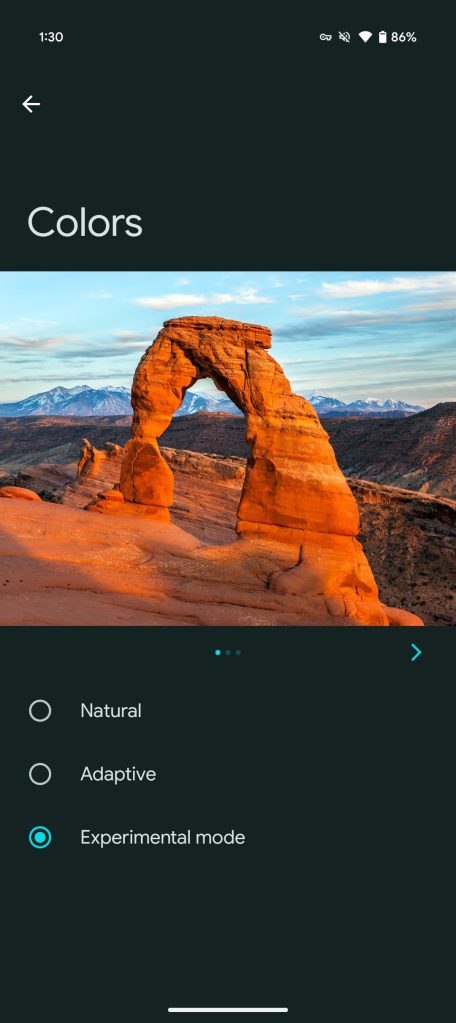 In Settings > Display & touch > Colors, you’ll find Natural and Adaptive joined by “Experimental mode.”