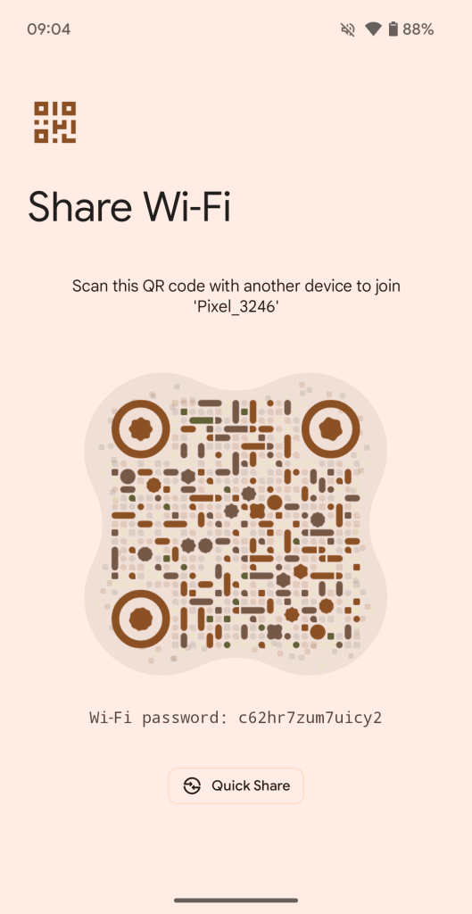 You’ll also notice that the updated QR code is larger with shapes that adhere to Dynamic Color system theming settings, while the Wi-Fi password text is much bigger and easier to read. It just looks a lot cleaner without the jarring white borders – however this likely helped readability when scanning from another phone, tablet, or laptop.