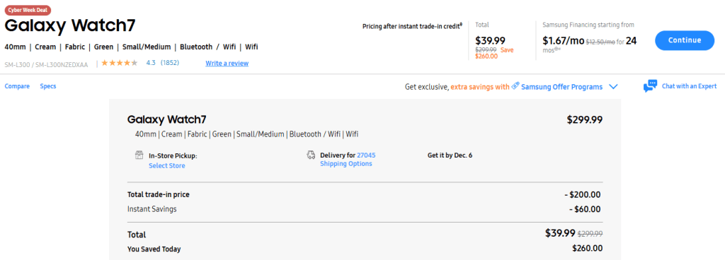 Through Samsung.com, you can get the Galaxy Watch 7 with up to $200 off with several smartwatch trade-in options, taking the cost down to just $39.99.
