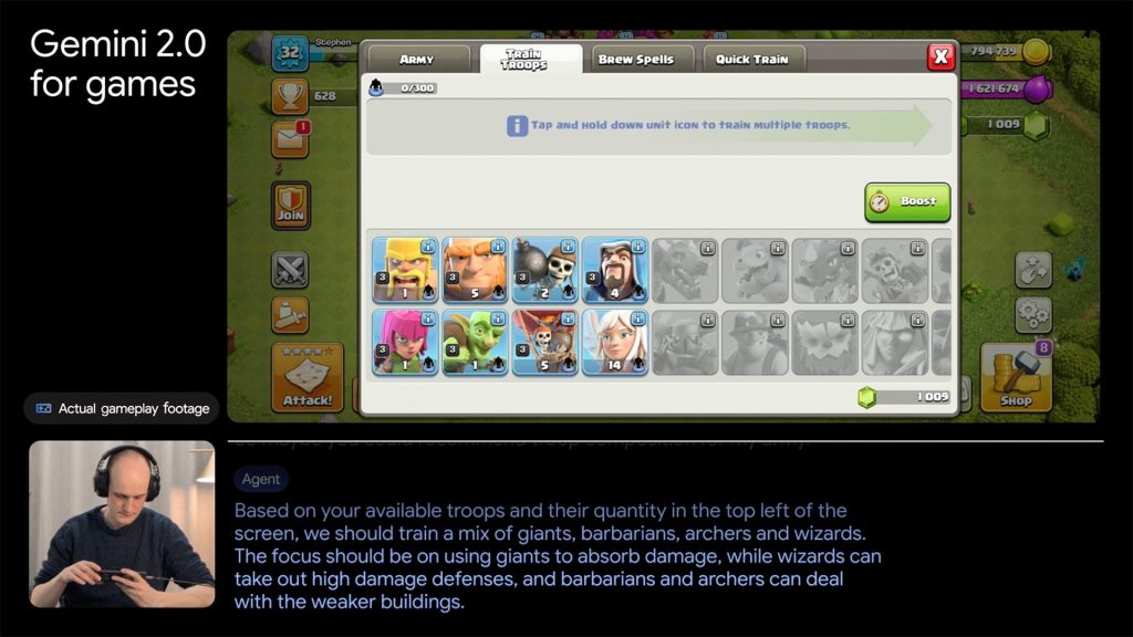 The last prototype is Gemini 2.0 for Games that can serve as a “virtual gaming companion” that sees your mobile phone screen and can answer your questions. It’s being tested with games like Clash of Clans.