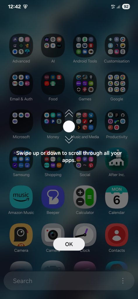 With the new vertical app drawer in One UI 7, Samsung has added a quick prompt to explain to users that the app list now scrolls vertically. There’s also a UI fix for the scroll bar. The battery icon has also been changed, widget scaling is improved, and the Quick Settings panel is now wider too. Samsung has also made it possible to switch the “Quick Panel” to the left side of the screen when the Quick Settings are split from the notification panel.