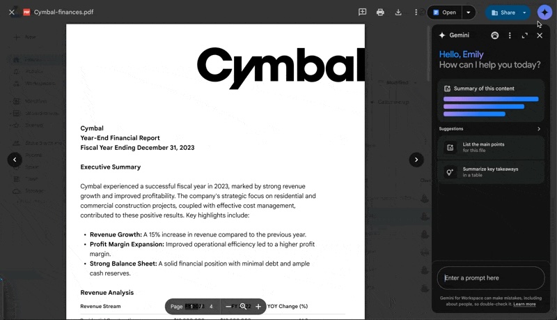This is different from fully opening a PDF, which gained Gemini in July: “With this update, the default behavior will open a file in the overlay file previewer. If you prefer for PDFs to open in a new tab by default, you can update your PDF opening default behavior in your Drive settings.”