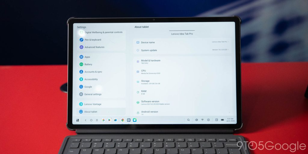 As “flagship” level Android tablets go, this should be a solid contender. Lenovo originally said this was supposed to launch with Android 15, but it’s actually Android 14 out of the box, though with Lenovo’s “PC Mode” available for a better keyboard/trackpad workspace.