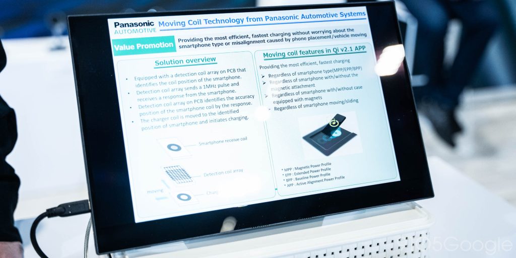 Panasonic Automotive Systems developed this new addition with vehicle applications in mind. Specifically, for vehicles that have a wireless charging area in the center console. The idea is to allow users to place down their phone anywhere on the pad and have the coil move into place to efficiently charge the device. That won’t matter at home, usually, but it’s very helpful in a car.