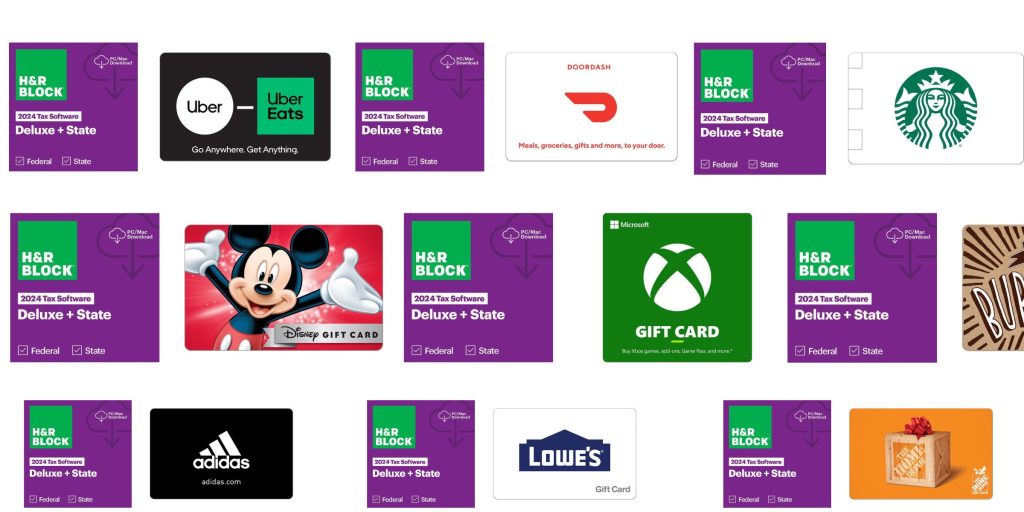 H&R Block 2024 Federal/State Tax software for Mac/PC + $20 gift card: Uber, Lowe’s DoorDash, Starbucks, more
