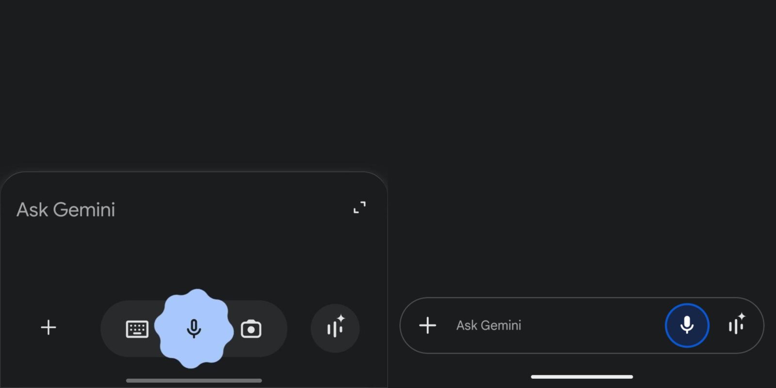 The previous design, and Gemini overlay, on Android has an elaborate (Material You) animation for voice input. That has been replaced by a blue circle around the microphone icon, which is now filled instead of just being an outline.