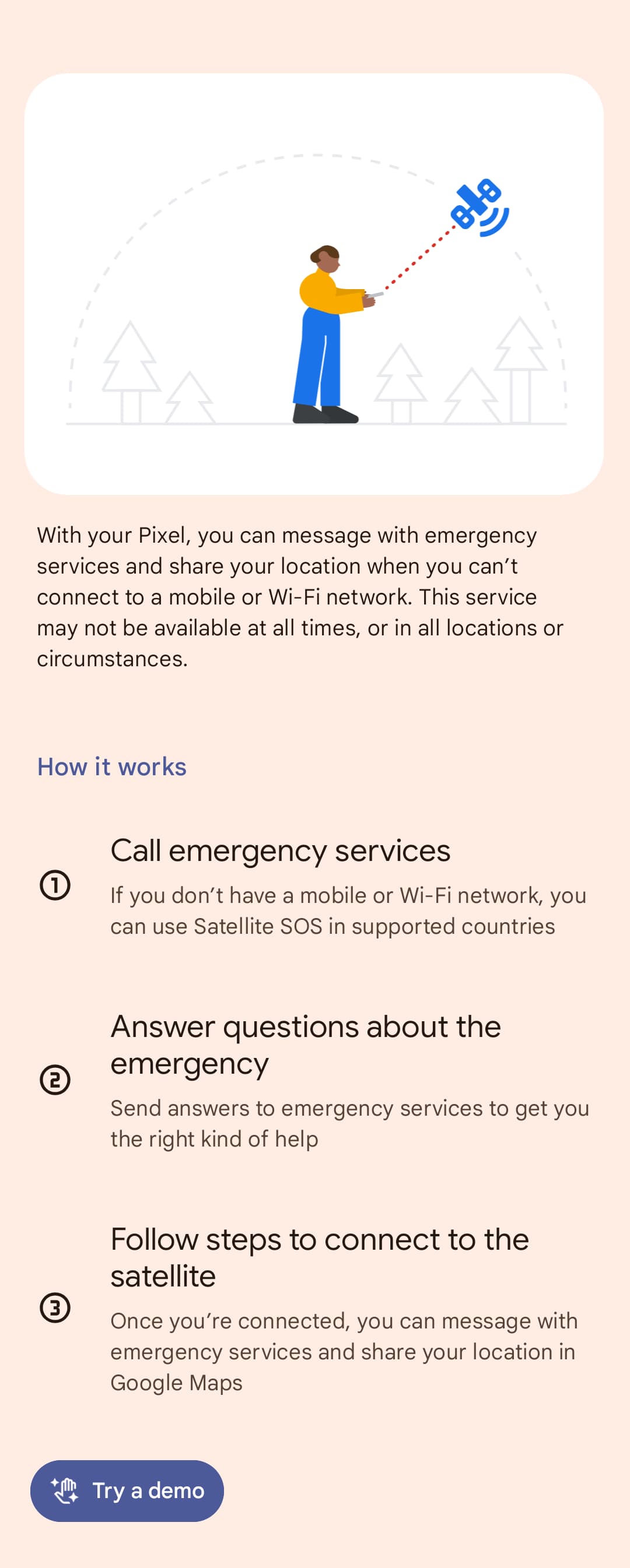 - In a possible expansion beyond the US, the Pixel Satellite SOS demo — at least — is accessible in the UK as of Beta 3.