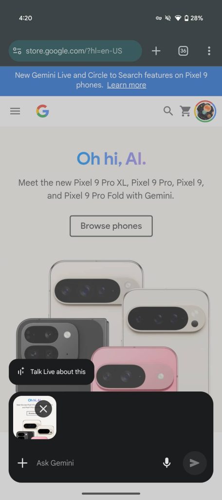 Following last week’s announcement, we are now seeing Gemini’s new “Talk Live about this” capability on the Pixel 9 series.