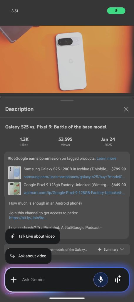 Following last week’s announcement, we are now seeing Gemini’s new “Talk Live about this” capability on the Pixel 9 series.
