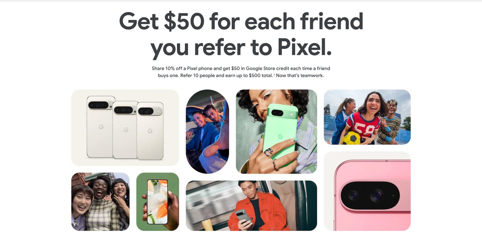 The US Google Store is launching a Pixel Referral Rewards program: “Earn $50 in Google Store credit for each friend who buys a Pixel and they’ll get 10% off a Pixel phone.”