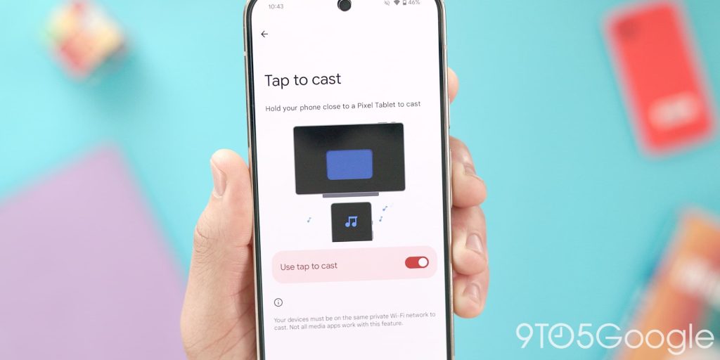 If you own a Pro Pixel phone and a Pixel Tablet, “Hold close to cast” is a fantastic – nay exceptional – feature. Requiring a 6 Pro, 7 Pro, 8 Pro, 9 Pro, or Pixel Fold, this feature allows you to easily transfer media by holding your phone close to a docked Pixel Tablet on the same Wi-Fi network. Enable it in your Google account settings under “All services” and “Cast options.”