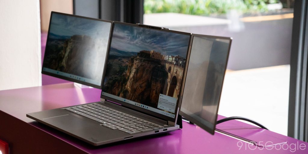 Finally, Lenovo has a trio of snap-on displays using its Magic Bay connection. This includes a wild triple-display add-on, a small 8-inch side display, and an even smaller display that connects to the top and is used to display messages.