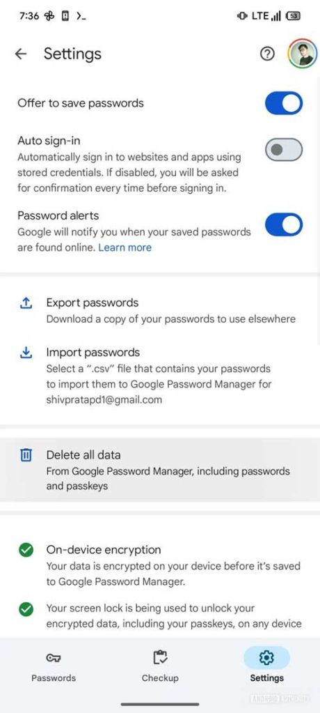Security is a top priority for password apps and one way to ensure that is to allow users to wipe their own password databases if needed. Google Password Manager for Android may add a “Delete all data” option so users can purge sensitive data in certain situations.
