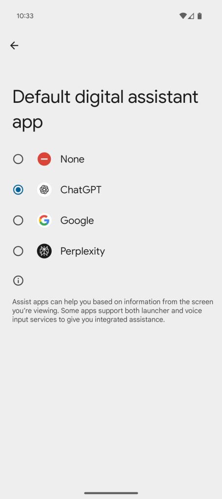 There are a lot of AI assistants available now, from Google’s own Gemini to Perplexity and many others. The listed two allow you to set them as a default assistant in Android. That means it will be the go-to option when users activate it via the power button shortcut that has been around since Google Assistant. It’s useful if you find yourself using another AI assistant in lieu of Gemini.