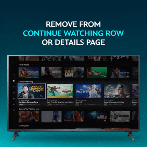 …Within the “Continue Watching” row itself, you’ll need to navigate to the title you want, press and hold the button on your remote to remove, and then select Remove. However, if you are on the title’s Details page, simply navigate to the Remove icon on the right side and select Remove. Rest assured though, your watch progress will not be deleted, even if removed from the “Continue Watching” row.
