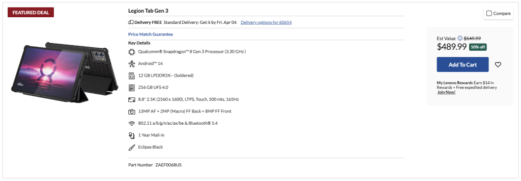 But, now, the Legion Tab is seeing its first discount on the Lenovo store, with a 10% discount cutting the price from $549 down to $489. It’s a solid deal with the new pricing in mind, but does sting just a bit knowing that, just a couple of weeks ago, the tablet was available for $499 as its usual price. The Legion Tab is shipping immediately from Lenovo’s store and has not yet expanded to any other retailers.