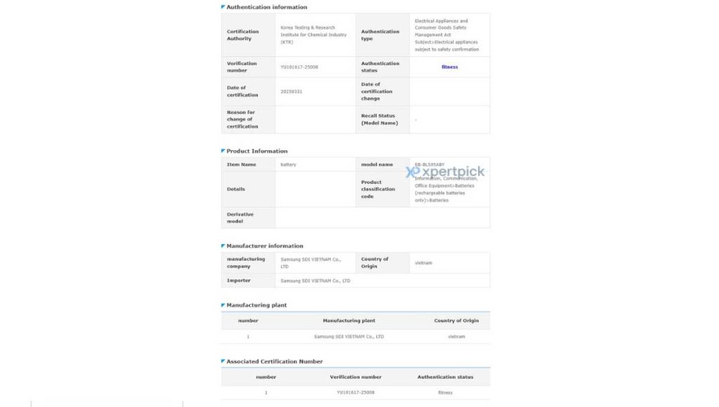 According to a new report by XpertPick, battery certifications from SafetyKorea have been obtained. These reports indicate that the batteries for two models have passed certification with one model’s battery capacity being noted in the report.