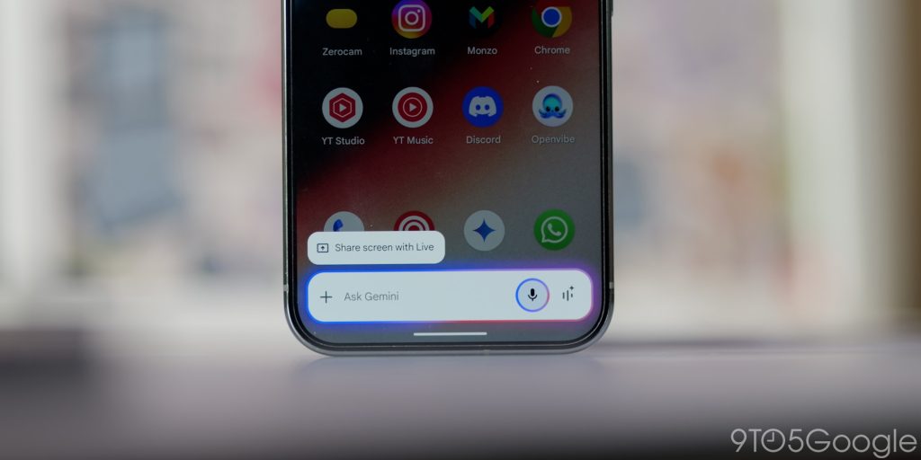 You can use your voice with the “Hey, Google” wake phrase. Above the compact Gemini pop-up bar you’ll see a “Share screen with Live” tappable button that will start AI-powered screen sharing. You are not able to select a single app yet. Instead, you have to share your entire screen. This might be intrusive for some people. A status bar chip will indicate that this is active. Tapping allows you to close or end your session quickly.