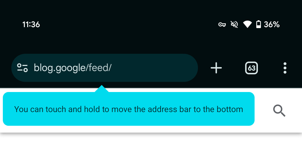 The Chrome Omnibox simply moves to the bottom edge of your screen for improved reachability. This is quite straightforward, and arguably a bit too basic. Namely, Google has not reordered the overflow menu.