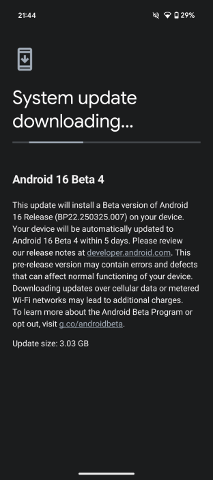 After enrolling, you will be able to pull the OTA by heading to Settings > System > Software updates. It is worth noting that you might need to refresh this page a couple of times if it doesn’t appear immediately. We expect Google to release OTAs that can be sideloaded if you prefer that method. However, these OTA files are not yet available at the time of writing. The update appears to weigh in at around 3.3GB for the Pixel 9a as it skipped Android 16 Beta 1 through 3 prior to this Beta 4 release, so tread carefully if you are on a limited network or have a low data plan.