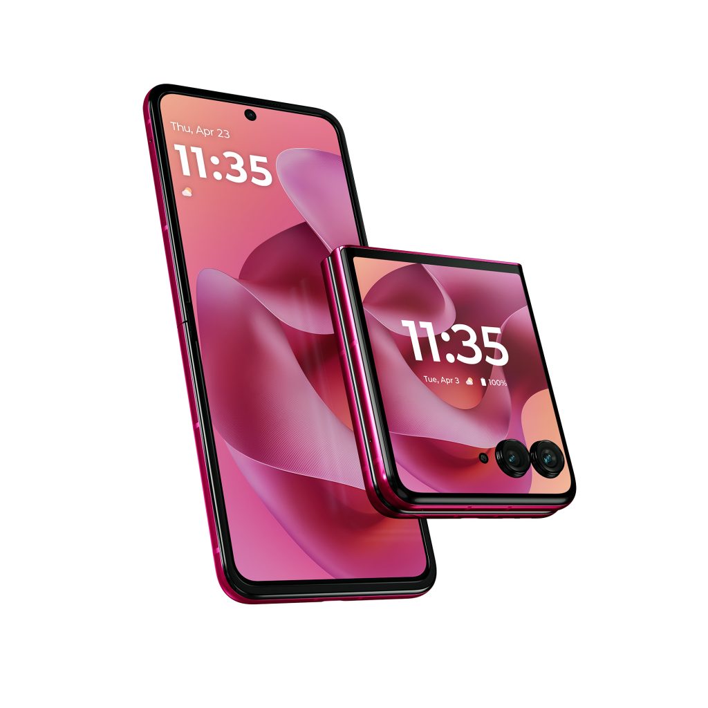 Colors on Razr+ (2025) include Mocha Mousse, Midnight Blue, and Hot Pink.