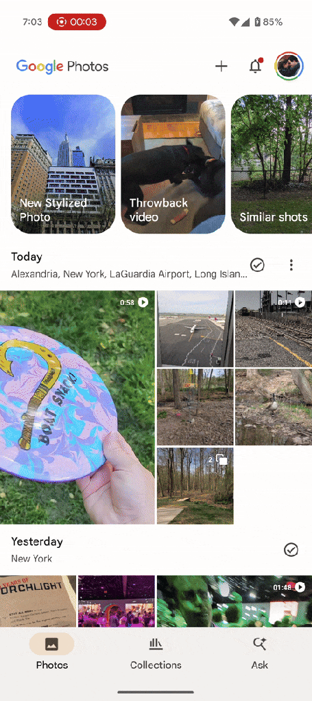 Double-tapping the search icon throws you directly into classic search, even though it shows “Ask” on the tab itself. This shortcut exists through a lot of Android apps and usually opens up the keyboard for a search box on a dedicated search tab, but it’s all the more useful in Google Photos since it switches to the mode that most of us want to use anyway.
