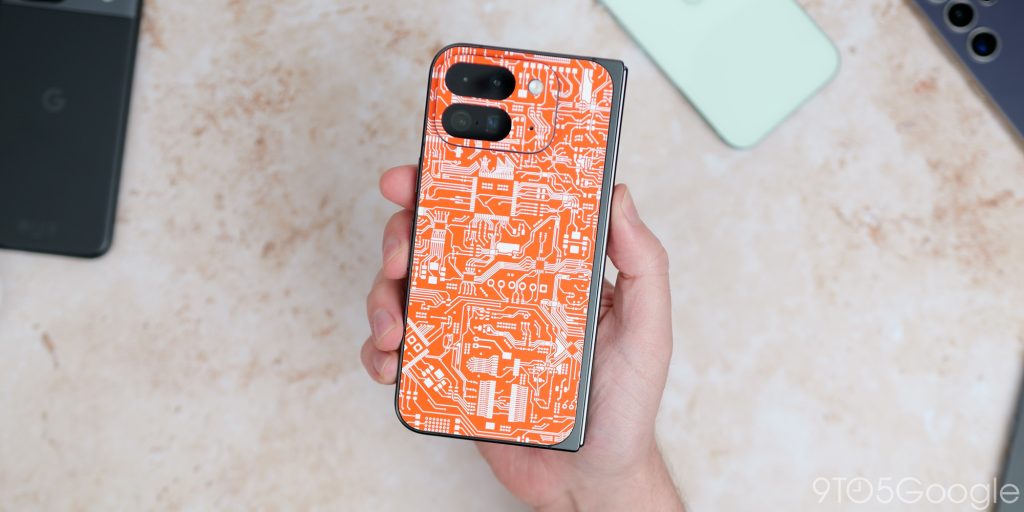 The Pixel 9 Pro Fold has two types of skin you can pick up. One for the camera bump or one for the rear glass plate. As you can imagine, there isn’t quite enough room to get a skin that will stick to the silver of frame at the front without coming unstuck. My personal favorite has been the recent Circuit Board collab with Linus Tech Tips. It’s a throwback, but looks incredible in the orange colorway. For $30 this isn’t cheap, but it adds some color to the Obsidian 9 Pro Fold that is sorely missing – all without adding bulk.